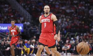 体育资讯4月3日讯 火箭今日143-105大胜爵士,提前锁定季后赛资格。赛后,火箭球员狄龙接受媒体采访。